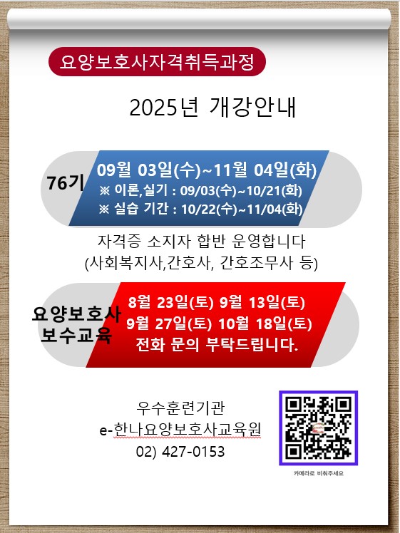 안녕하세요 e-한나요양보호사 교육원입니다.